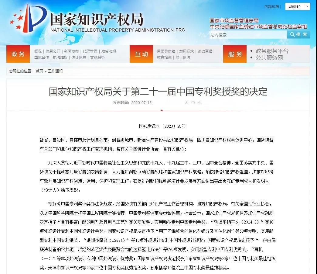 “中國專利獎(jiǎng)”是由中國國家知識(shí)產(chǎn)權(quán)局與世界知識(shí)產(chǎn)權(quán)組織共同主辦的,是我國專利領(lǐng)域的最高榮譽(yù)!評(píng)獎(jiǎng)標(biāo)準(zhǔn)不僅強(qiáng)調(diào)項(xiàng)目的專利技術(shù)水平和創(chuàng)新高度,也注重其在市場(chǎng)轉(zhuǎn)化過程中的運(yùn)用情況,同時(shí)還對(duì)其保護(hù)狀況和管理情況提出要求。據(jù)中國知識(shí)產(chǎn)權(quán)報(bào)的數(shù)據(jù)統(tǒng)計(jì),本屆評(píng)選共有2400多項(xiàng)專利參評(píng),數(shù)量為歷年之最。