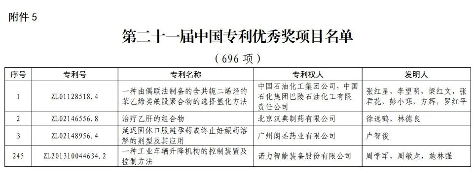 近日,國家知識(shí)產(chǎn)權(quán)局正式發(fā)布了關(guān)于第二十一屆中國專利獎(jiǎng)授獎(jiǎng)的決定,諾力股份的發(fā)明專利“一種工業(yè)車輛升降機(jī)構(gòu)的控制裝置及控制方法”獲得中國專利優(yōu)秀獎(jiǎng),這也是公司首次獲得中國專利獎(jiǎng)。